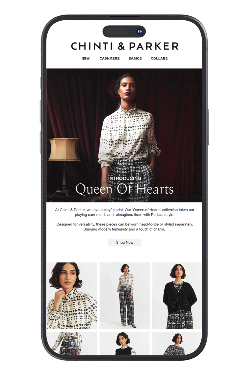 I support campaign shoots and lead the creative direction of e-commerce productions, carrying concepts seamlessly through to final design. As graphic designer, I curate and craft launch assets across web, email, and social, ensuring a cohesive brand narrative. Shown here is the campaign advertisement and email hero I designed, translating the collection into an elevated digital experience.